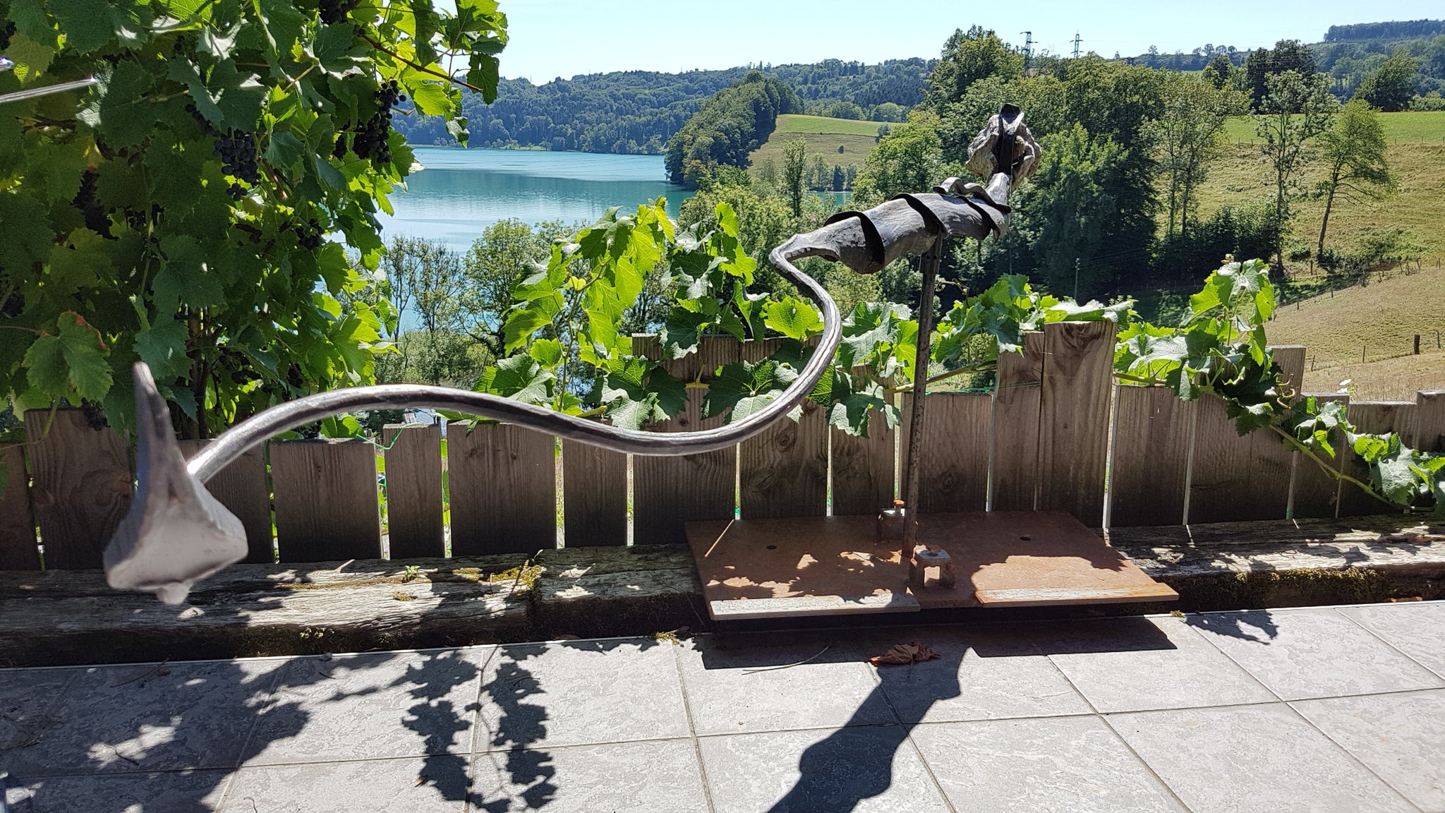 Am Anfang steht die Entwurfsskizze und die Idee. In der Schmiede nimmt das glühende Eisen, aufgrund von alten Techniken, wie z.B. Schmieden, Nieten, Spalten und Feuerschweissen, Schlag für Schlag seine endgültige Form an. Meine Arbeiten in alter und neuer Schmiedetechnik bestechen durch ihre klare, zweckmässige Formgebung und umfassen funktionelle, künstlerische sowie symbolische Objekte.