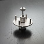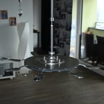 Das Ess -Karussell (alles aus CNS Material, auch Kugellager und Federung) kann mit 8 Löffeln bestückt werden. Der Kunde fährt mit dem Rollstuhl heran, dreht mit dem Mund das Karussell und gelangt so an den gewünschten Löffel. Die Löffel können einfach herausgezogen (siehe Bild 11)  und die Karussellkonstruktion (ohne Schrauben, nur mit Splinten) auseinander gebaut und abgewaschen werden.