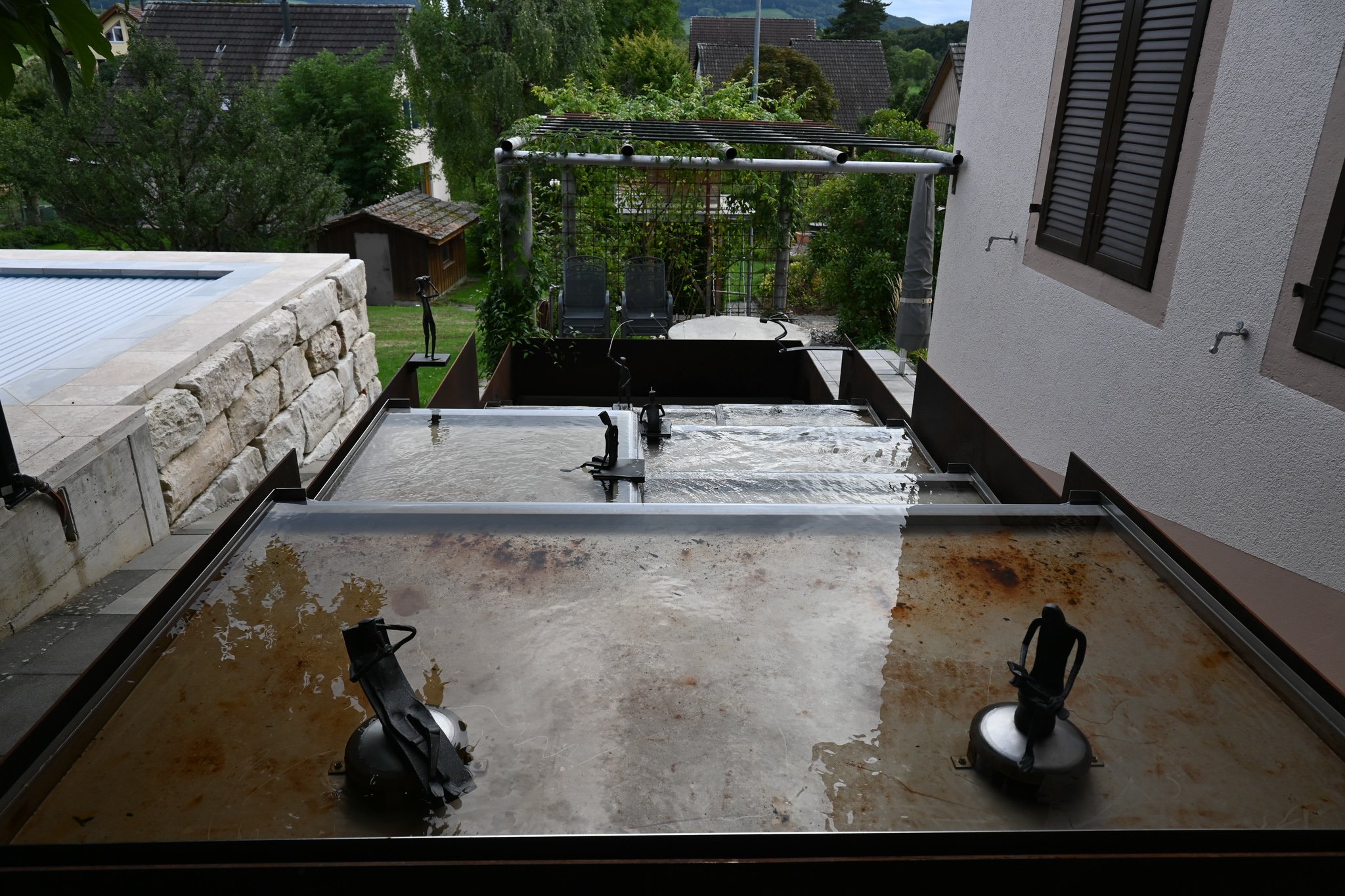 11 Becken aus CNS Stahl an Seitenstahlwangen (roh) aufgelegt.
